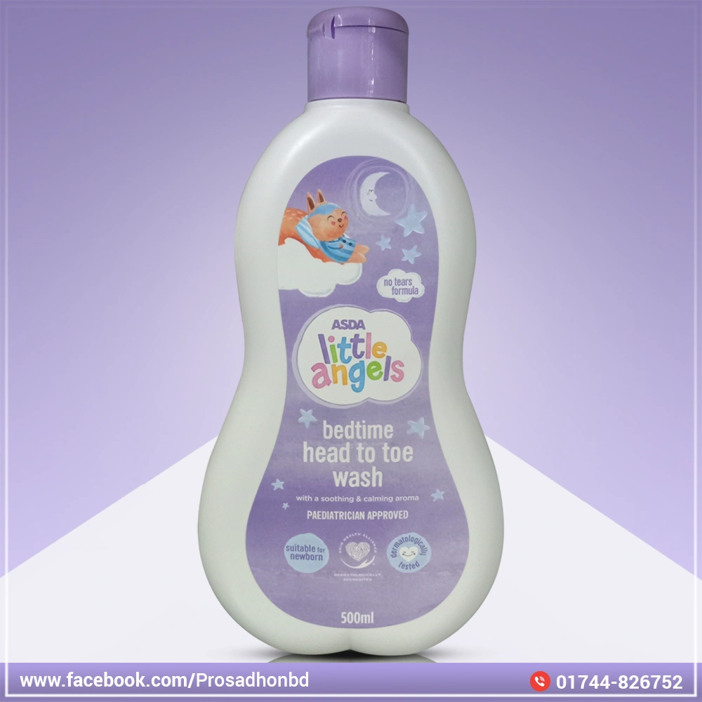 Product Description: Asda Little Angels Baby Bedtime Head to Toe Wash product will be kind and gentle, to you, your little one and our world. We’ve dermatologically tested it to make sure it is safe for everyone. We’ve even made sure that this packaging is 100% recyclable; that’s one less thing for you to worry about. Make Bedtime Head to Toe Wash time fun, free from tears and full of foam with our kind and gentle bath bubbles.