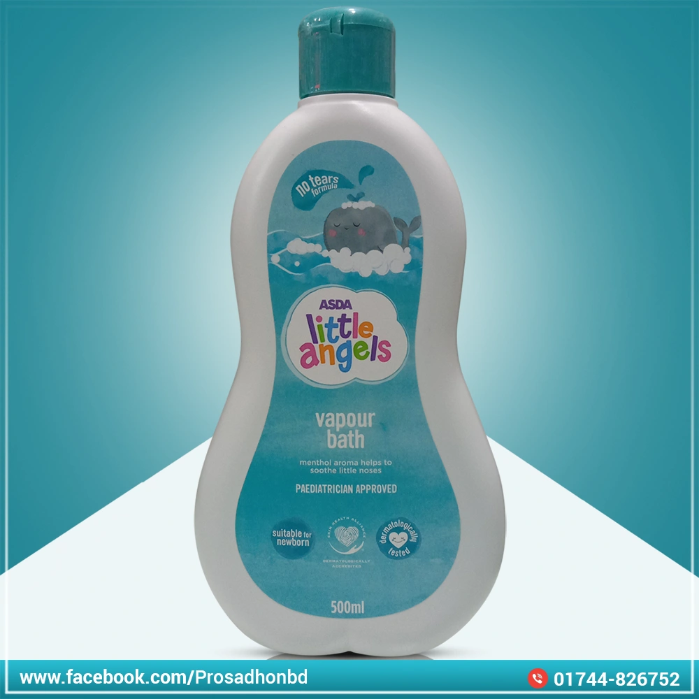 Product Description: ASDA Little Angels Vapour Bath is a gentle and soothing bath solution specially formulated for babies and toddlers. Infused with mild menthol vapours, it helps ease congestion and provides comfort during colds and sniffles. Ideal for bedtime routines, this vapour bath creates a calming experience that helps your little one breathe easier and sleep better.