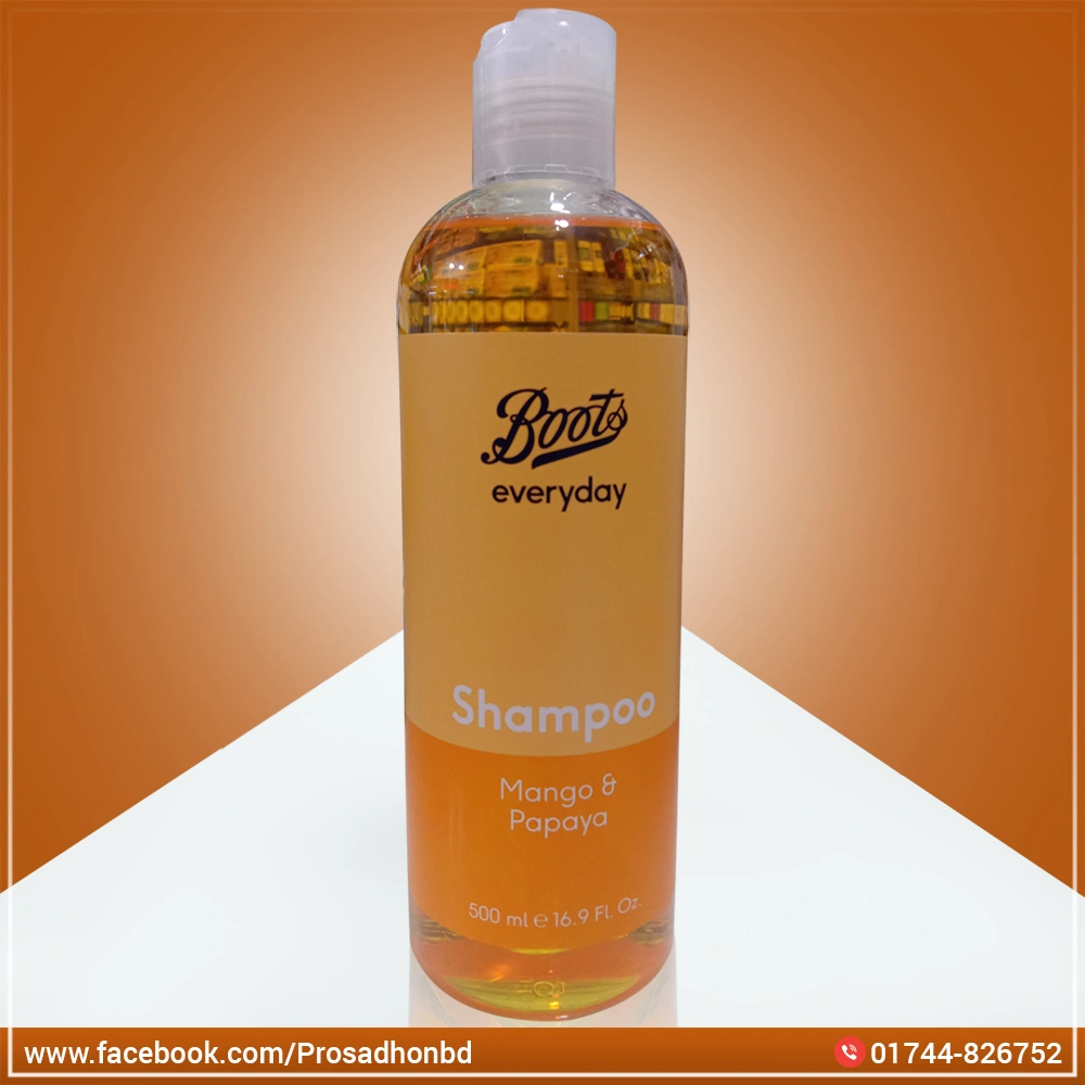 Product Description: Boots Fresh & Fruity Mango & Papaya Shampoo 500ml Get refreshed with our fresh and fruity shampoo. It’ll leave your hair feeling soft and looking shiny.