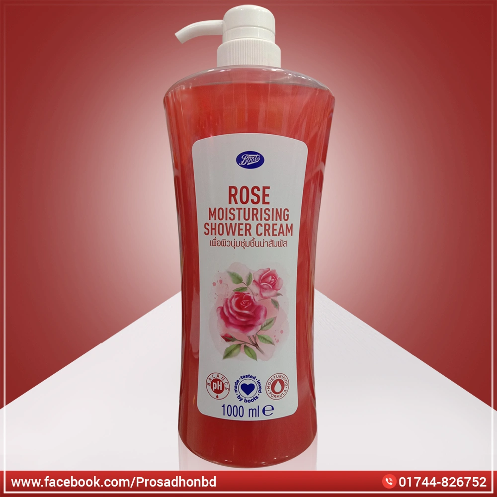 Product Description: Boots Rose Moisturising Shower Cream (1 Litre) is a luxurious shower cream formulated to provide deep hydration and nourishment. Infused with the delicate fragrance of roses, it transforms your daily shower into a soothing ritual. Its pH-balanced formula ensures gentle cleansing without stripping natural oils, making it suitable for all skin types, including sensitive skin.