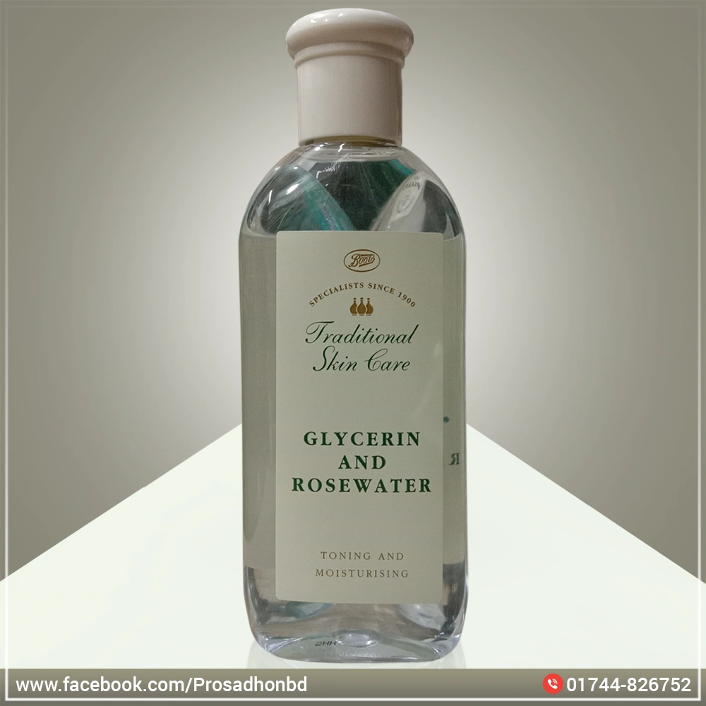 Product Description: Boots Traditional Glycerin and Rosewater is a cooling, refreshing beautifier that softens and moisturizes the skin. Lanolin-free and dermato logically tested. This product is formulated and produced by Boots Skin Care Specialists from traditional ingredients.