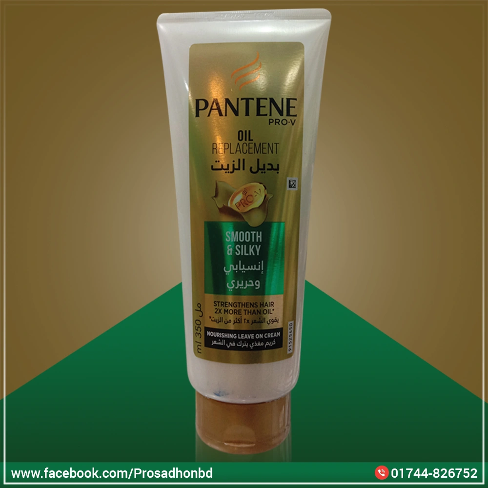 Product Description: Pantene Pro-V Smooth & Silky Oil Replacement 350 ml hair oil replacement used for breakable hair and helps to control the frizz by locking moisture out and making hair more manageable. Oil replacement from Pantene also provides styling and blow-drying protection. Hair oil replacement also intensively regenerates damage hair and helps to counteract the effects of daily hair styling.
